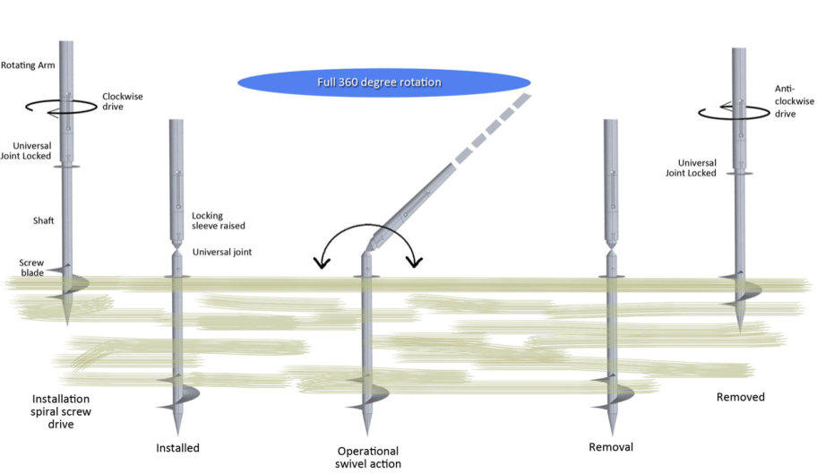 The diagram below shows the steps involved in the vertical deployment of the Greenstick and the unique unlockable joint,